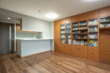 今まで住んでいたお住まいを、これからも長く快適に過ごしやすくするためのリノベーションを行いました。鏡面仕上げの床材のため、光が反射し美しく高級感のある空間を演出しています。和室だった部屋は洋室に変更し、空間の一体感が生まれるだけでなく、小さな段差も解消されました。