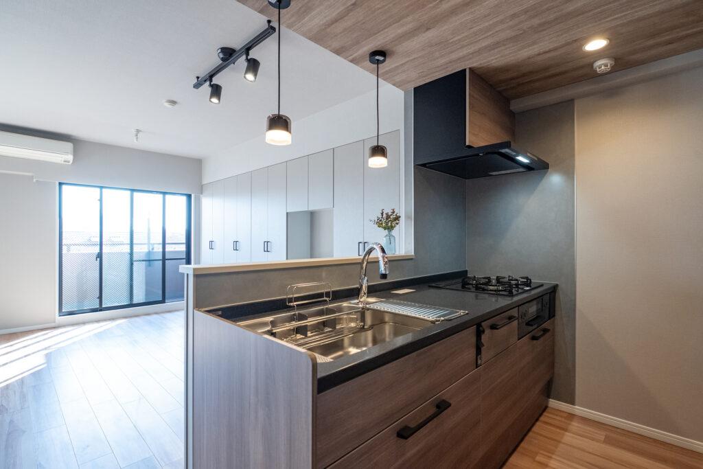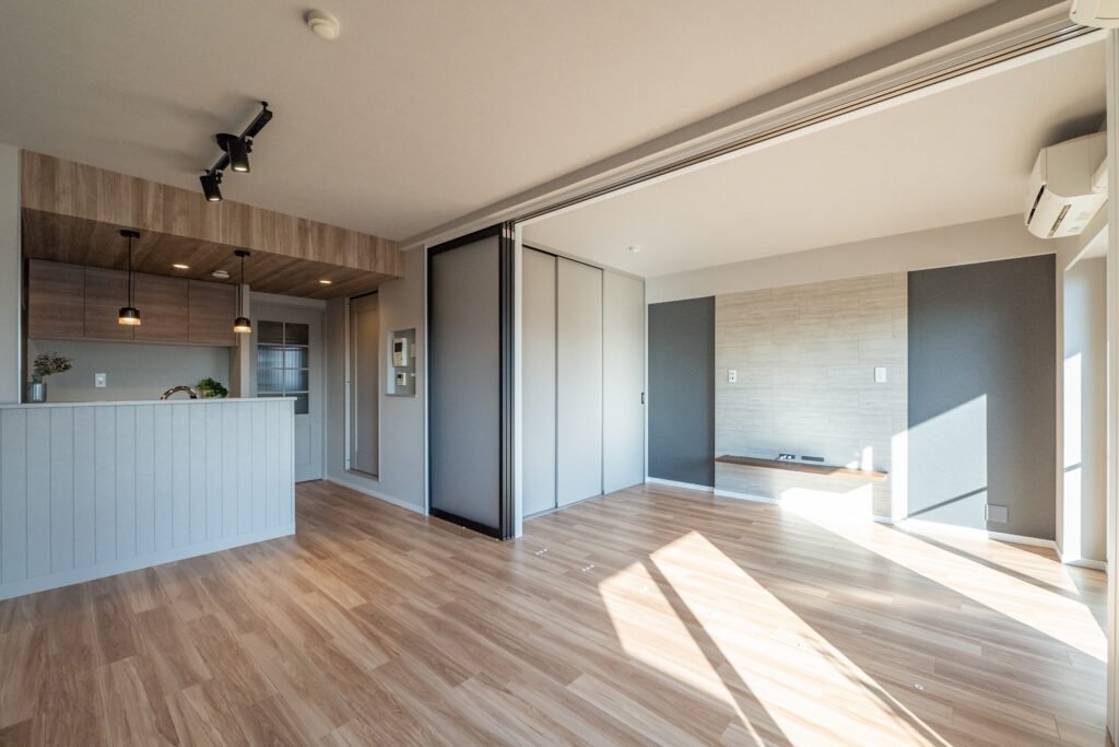 キッチンは吊戸棚を撤去して開放感をつくり、隣接する旧和室は洋室へ変更。
